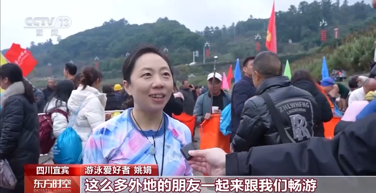 在四川宜宾,冬泳横渡活动热火朝天。上千名来自全国各地的游泳爱好者在江中劈波斩浪,挑战横渡长江1200米江面,迎接新年到来。